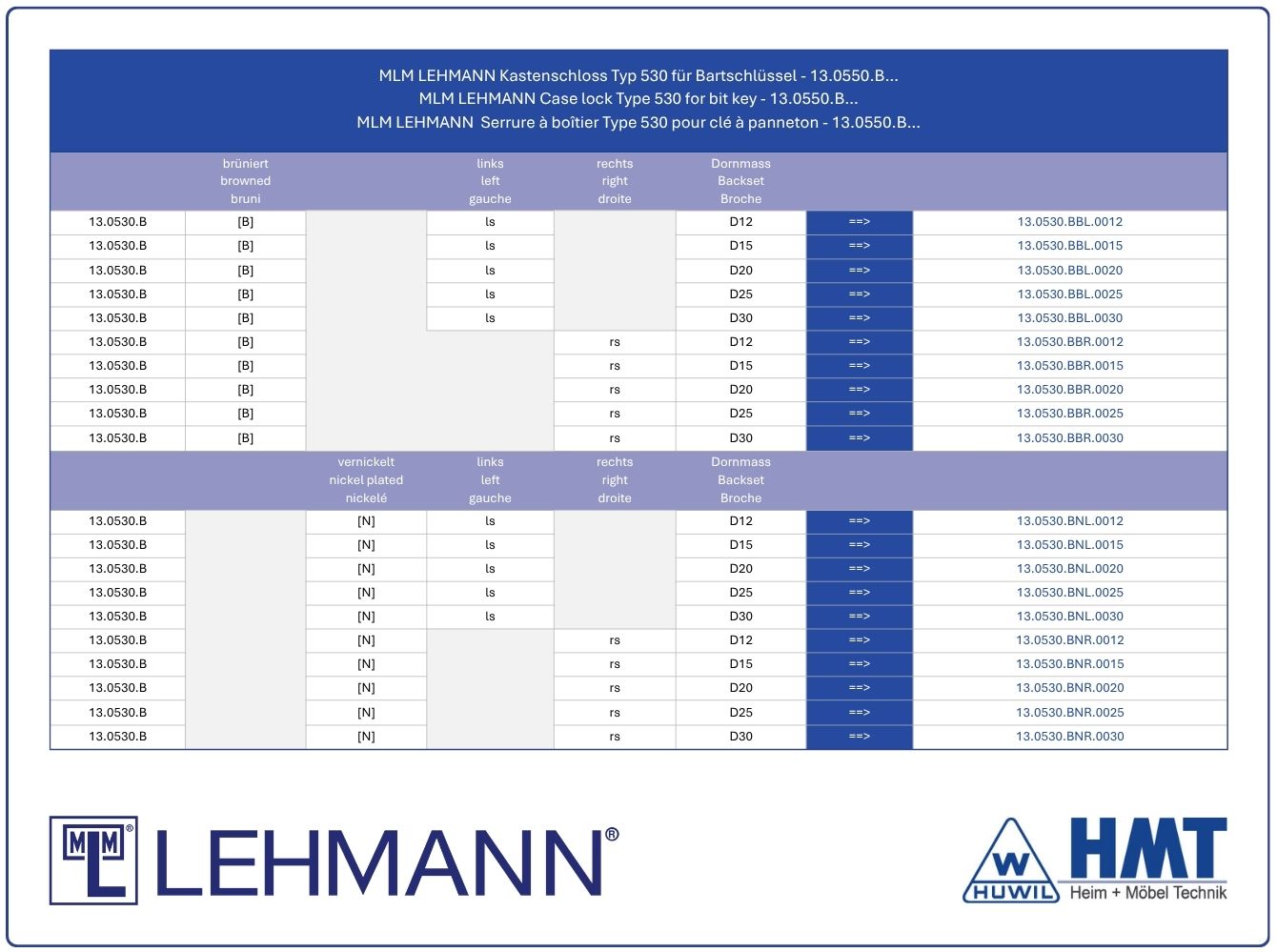 ![MLM SERRURE Type 530 [B] pour clé à panneton - D12 / rs MLM SERRURE Type 530 [B] pour clé à panneton - D12 / rs](https://www.huwil.de/media/28/1c/a8/1770215315/13.0530.BBR.0012_1.jpg?ts=1774719964)